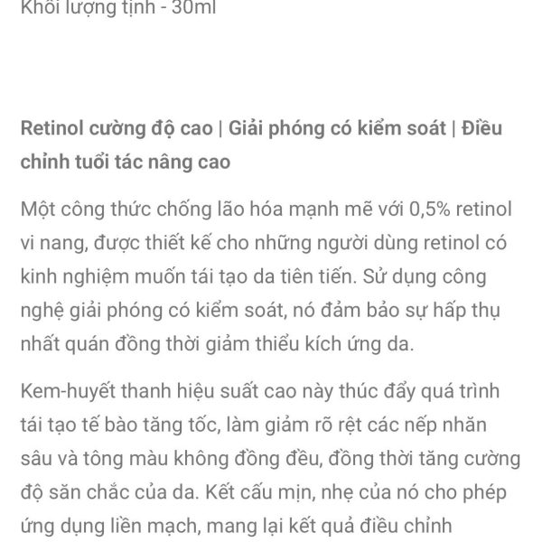 Retinol cường độ cao | Giải phóng có kiểm soát | Điều chỉnh tuổi tác nâng cao
